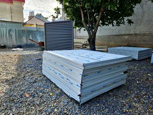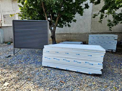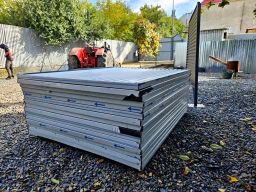 Hekpanelen gemaakt van 0,8 mm golfplaten RAL 7016 antracietgrijs met afmetingen, breedte 2000, hoogte 1600 met beschermende folie, 15 panelen 2000x1600. Inkopen