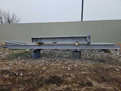 Aanvullende informatie Staalconstructie; Bergkamhoogte 3223 mm; Bouwjaar 2026; Aanvullende informatie Dakhelling: 10 graden; Geschilderde Galvazink; De constructie bestaat uit 4 balken (spanten) van IPE 180 profiel, EN 2 pilaren van HEA 220 profiel, dakpalen van C 150 profiel GEGALVANISEERD, de gehele constructie is op schroeven (afneembaar). Staat: ongebruikt; De gehele constructie bevat een certificaat van conformiteit voor materialen. Vrijlating