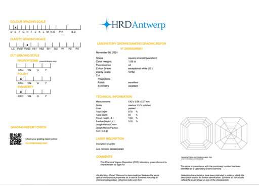 Emerald diamant 1.05 ct – E/VVS2 – HRD