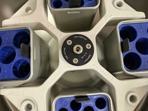 900W, inclusief 1 A-4-81 rotorarm (maximaal 4000 rpm, maximaal 4x1,4 kg) met 4 emmers, 2 x 50 ml adapters en 2 x 12 x 15 ml adapters