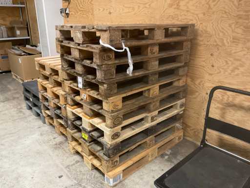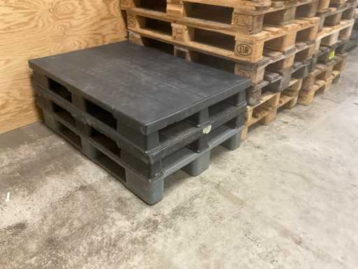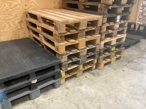 Pallets bestaande uit 3 kunststof pallets en 16 houten europallets