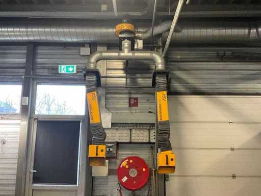 v.v. (1x) filterkast; type EFM500 en (6x) flexibele afzuigarmen met ventilator; type UltraFlex / TSA; incl. leidingwerk en stalen kolom