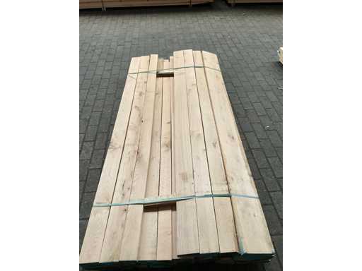 vallend breed 100-220 mm; lengte 220-230 cm; kunstmatig gedroogd; kwaliteit licht rustiek; 2-zijdig geschaafd; totaal ca. 0,5 m³