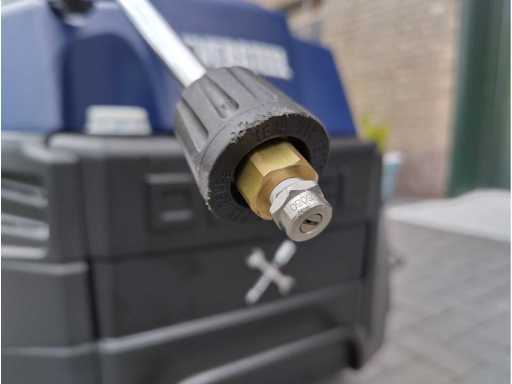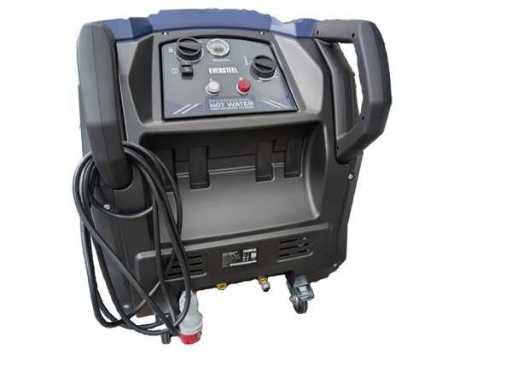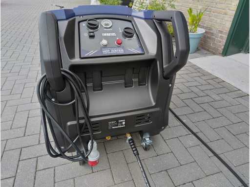Diesel hogedruk stoomreiniger professioneel, incl. 10 meter hogedrukslang en spuitlans, vloeistof aanzuiging voor reinigingsproducten, waterfilter, dieseltank voor verwarming 10 liter inhoud, 2 zwenkwielen en 2x vaste wielen, 5 polig 16 Amp industriestekker 380 volt, 7300 watt, 69 KW verwarming vermogen. tot 110 graden. in krat