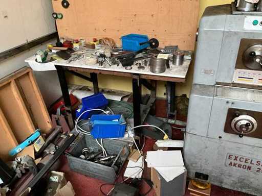 Compleet met enige toebehoren liggende in kast en naast draaibank