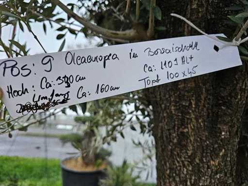 Deze indrukwekkende olijfboom (Olea europaea) is een waar meesterwerk van de natuur en een hoogtepunt voor elke verfijnde tuin. Met een trotse leeftijd van ongeveer 110 jaar en een artistieke bonsai-slijpvorm, belichaamt dit exemplaar pure mediterrane elegantie. De massieve, karakteristiek gefurde stam met een omtrek van ongeveer 160 cm getuigt van meer dan een eeuw geschiedenis. De dichte, zilvergroene kroon is perfect gevormd, waardoor deze boom een exclusieve solitaire plant is.