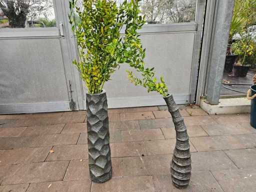 Exclusieve set van 2 glasvezelvazen inclusief kunstplanten - 110 cm