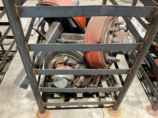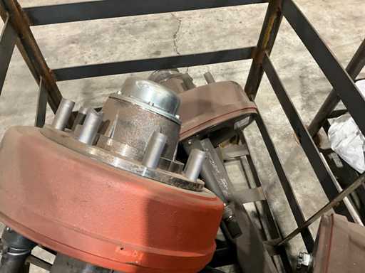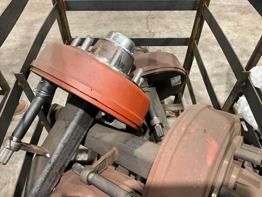totale lengte asstomp 850 mm, voorzien van remtrommel breedte circa 110 mm, 8 bouts/steek circa 270 mm, in en met juk