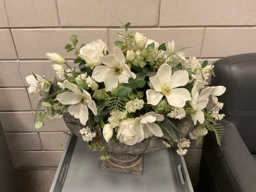 Inclusief bijzettafel, ( 47 x 47 x 43 cm) dienblad en bloemstuk