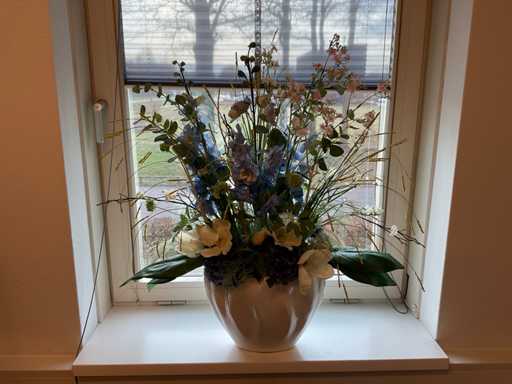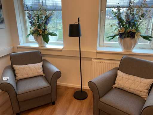 Met schemerlamp en 2 bloempotten met kunstbloemen