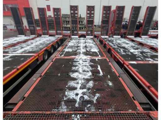 Intern nummer: 4663, Registratiedatum: 14.03.2013, Totale afmetingen LxWxH: 13,35 x 2,54 x 4,00 m, Toegestan bruto gewicht: 58.600 kg, Leeggewicht: 12.200 kg, Laadvermogen: 46.400 kg, Aantal assen: 3, Verbreding tot 3,0 m laadgebiedbreedte, Geforceerde gewrichten achteras, Hydraulisch uittrekbed tot ganzennek