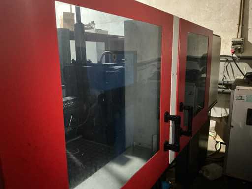 Machinegegevens: klemkracht 750 kN, injectiedruk tot ca. 1963 bar, geïnstalleerde motorvermogen 27 kW, bouwjaar 2003, ongeveer bedrijfsuren 2.099.376 uur.