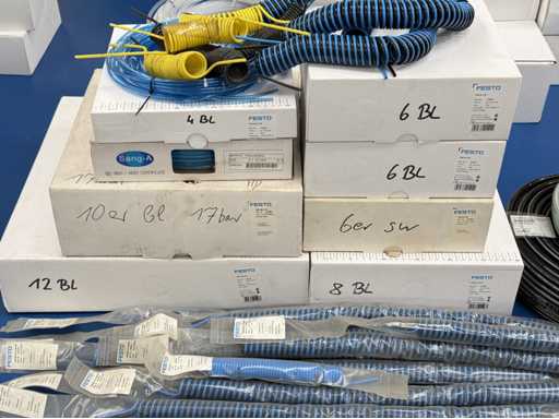 Assortiment pneumatische slangen in verschillende ontwerpen, diameters en maten, voornamelijk gemaakt door FESTO, zie foto's voor meer details