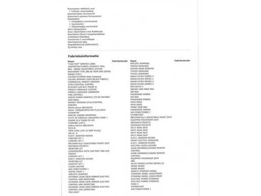 Tussen de afbeeldingen vindt u het VIN Rapport met Fabrieksinformatie en Opties en Accessoires.