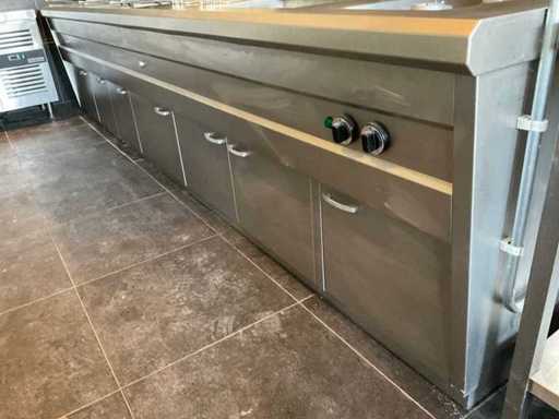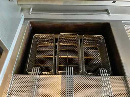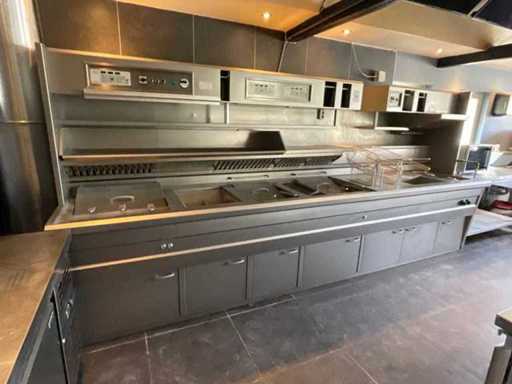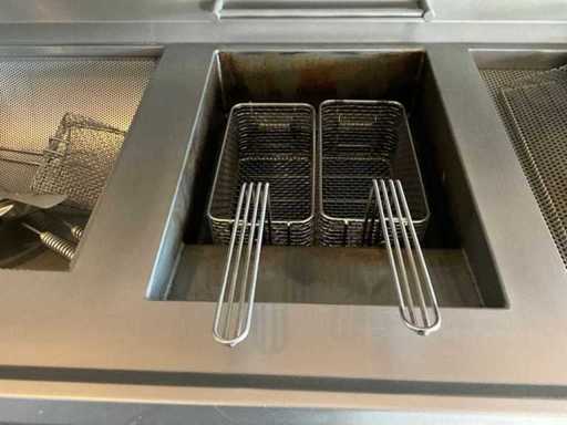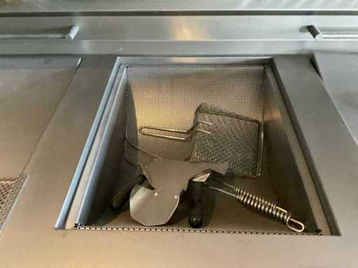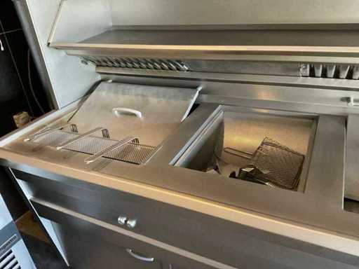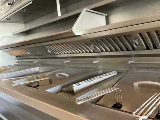 Bestaande uit: 3x friteuses voor 8 mandjes, inclusief reserve mandjes, opvangbak friet, 2x gaspitten, filters boven friteuse en kookplaat.
