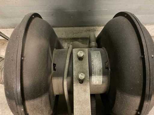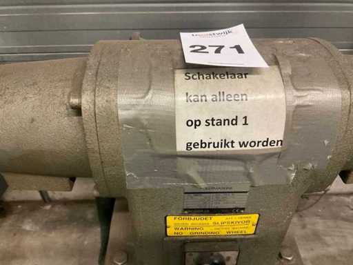 Dubbele industriële bandschuurmachine, met afzuiging, aansluiting 380v, schakelaar kan alleen op stand 1 gebruikt worden