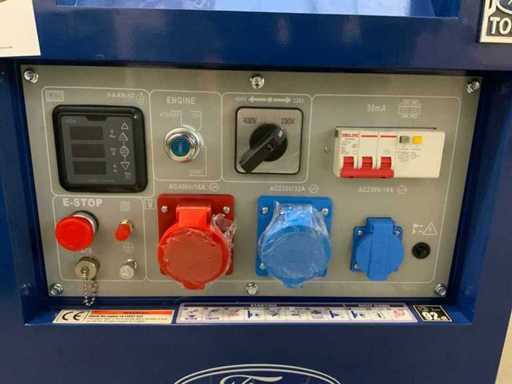 Lichte transport beschadigingen; deur licht ontzet; elektrische start; montageset; 50Hz; 230V 6/6.3kva; 400V 7.5/7.9kva; stalen frame; 14L brandstoftank; 92dB; ongebruikt in verpakking; 4448;