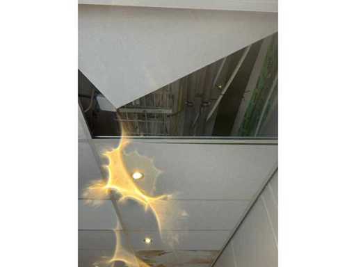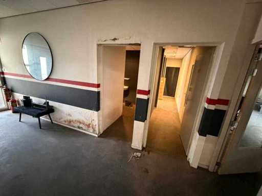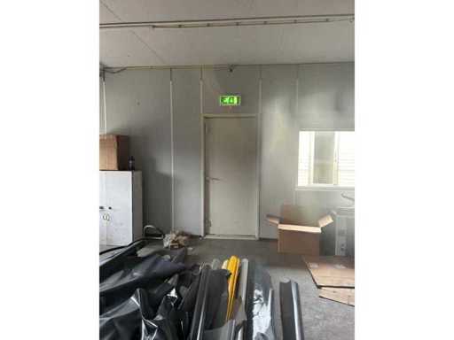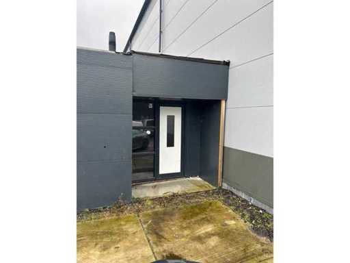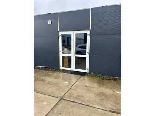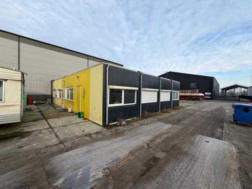 Units zijn voorzien van betonvloer, elektrische verwarming. 4 units met de afmetingen ca. 7,37 x 3,07 meter (per unit); 4 units met de afmetingen ca. 6,14 x 3,07 meter (per unit), zie plattegrond. Er zit een overgang gebouwd van de units naar de loods, deze hoort bij het kavel, dit is geen unit maar een aanbouw. De geïsoleerde units zijn voorzien van rolluiken, elektrische verwarming vloeren van beton, draai-/kiepramen. Indeling: 2x toiletgroep, cv ruimte, oppervlakte ca. 165 m2 plus aanbouw doorgang ca. 30 m2. De gele originele beplating is voorzien van nieuwe grijze sandwichpanelen, zie foto's.
