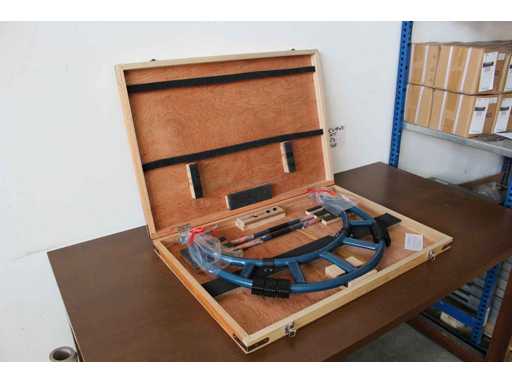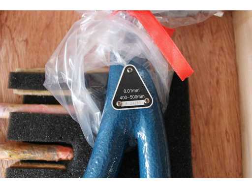 Elke micrometer is voorzien van twee gemakkelijk verwisselbare aambeelden. Dit model heeft een meetbereik van 400-500 mm. Schaalverdeling: 0,01 mm Staat van
