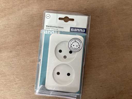 dubbele wandcontactdoos zonder randaarde, opbouw, wit