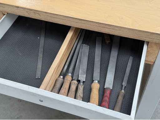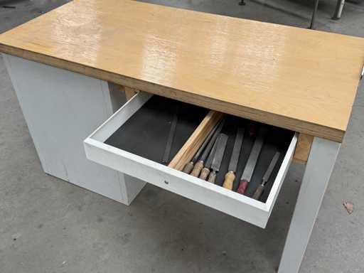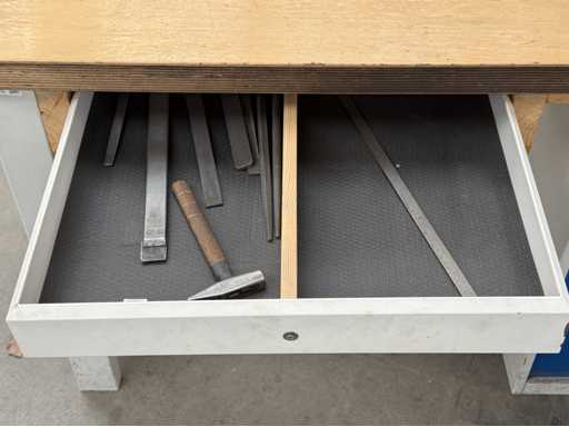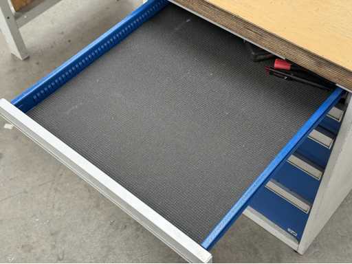 Breedte van de werkbank 1500 mm, uitgerust met ladekast, in totaal 5 lades, zie foto's voor meer details