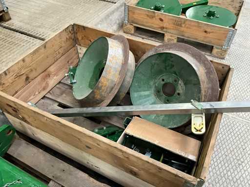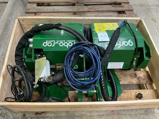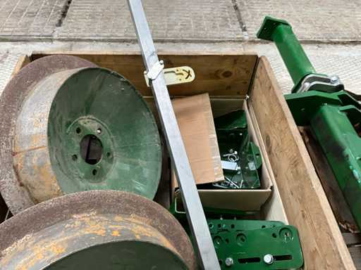 gedemonteerde machine, op 3 pallets, voorzien van stabilisatie wielen, ophanging, camera bevestigingspaal, camera besturing,