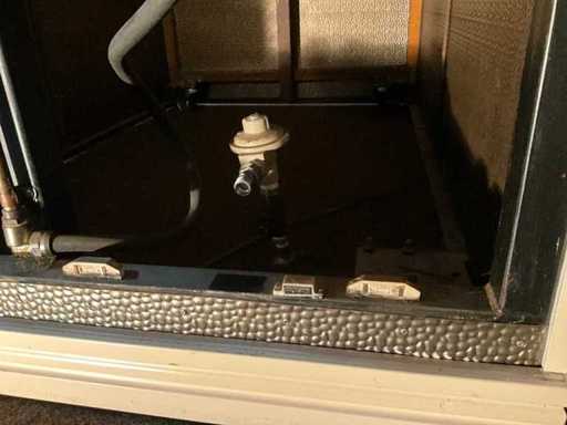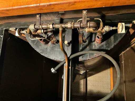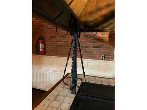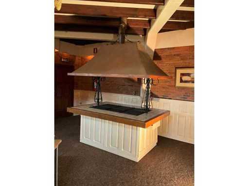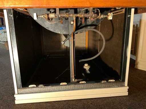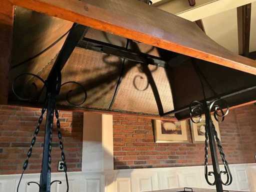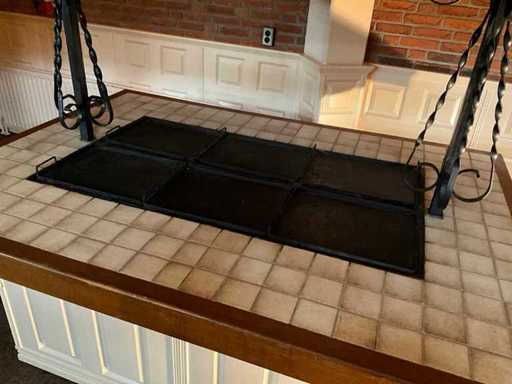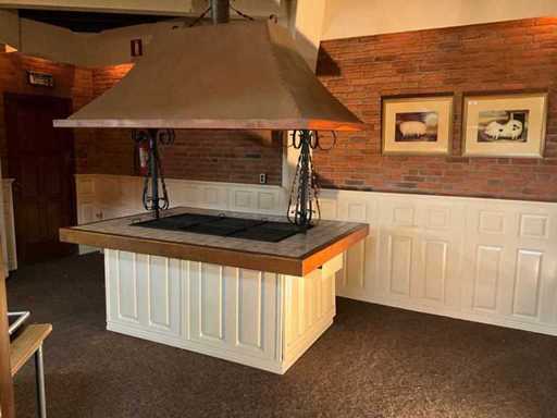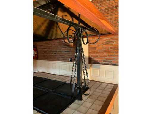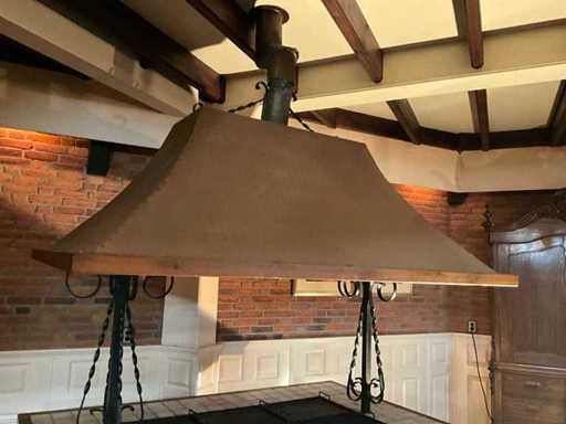 verrijdbaar; voorzien van koperen kap met afzuiging.; Aardgas