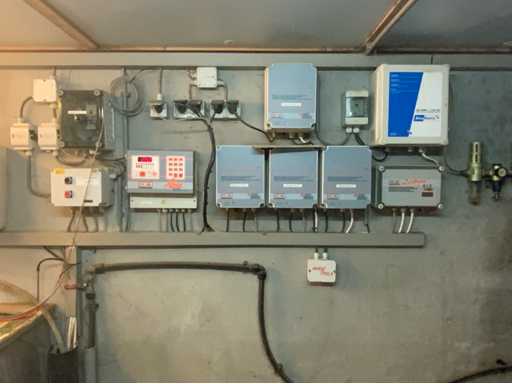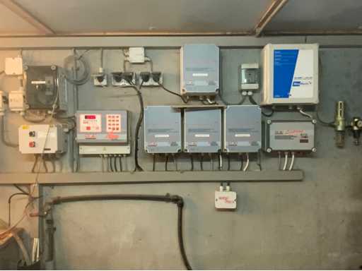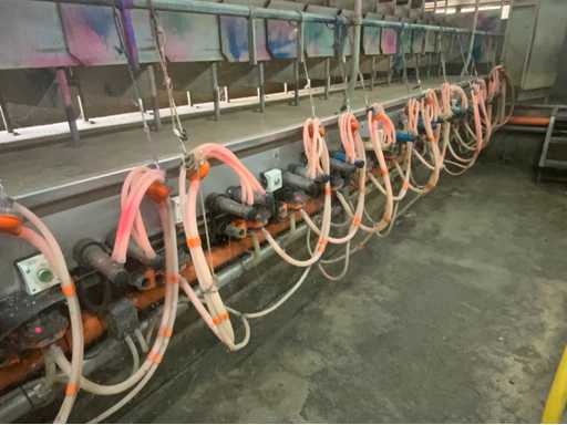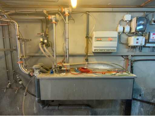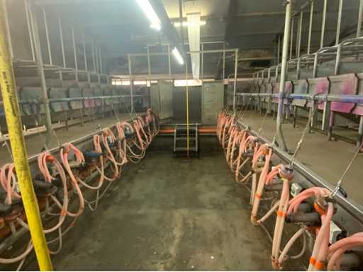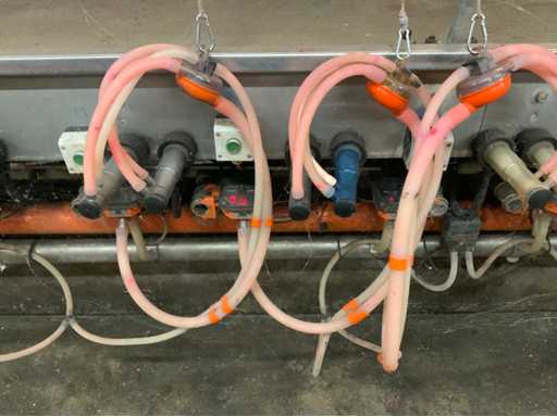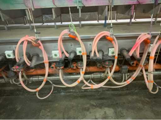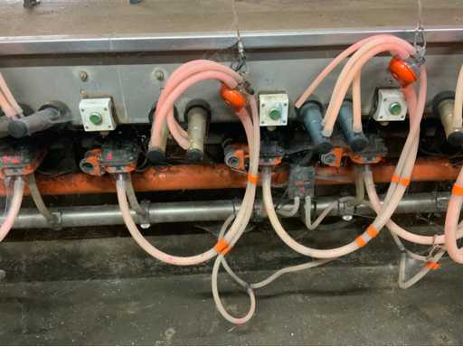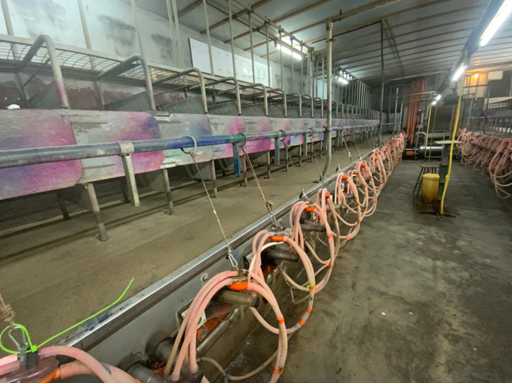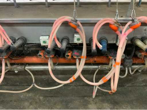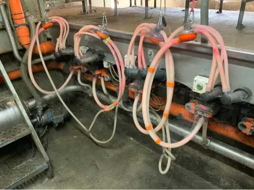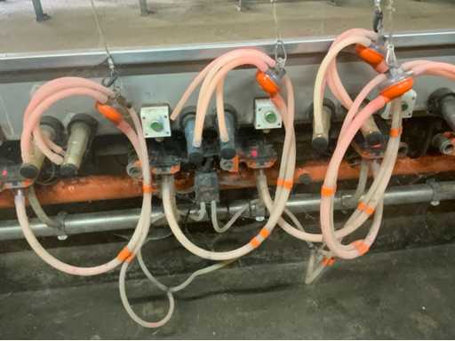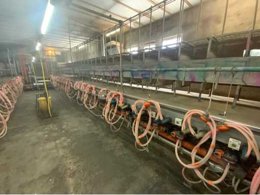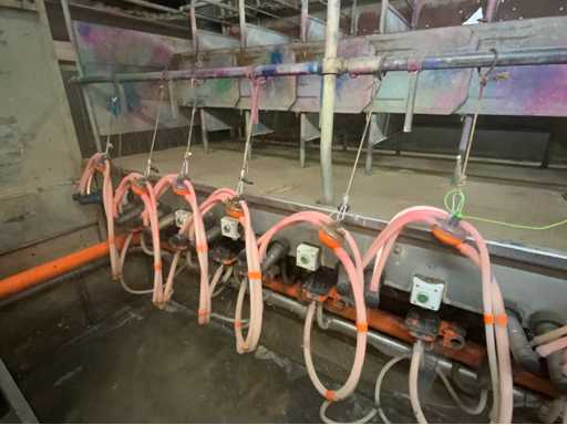 Complete geiten melkstal inrichting 2x36 1 op 1 met melkstop. Rapid exit systeem. Voorzien van pomp, buffervat, complete controlekast. Melktank en compressor zitten niet bij het kavel. Rest is alles aanwezig, goed onderhouden.