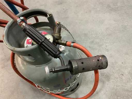 Met gasfles en brander