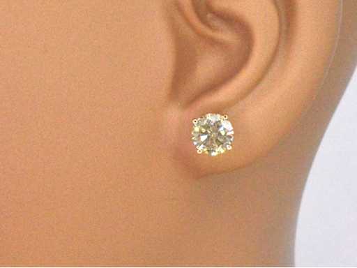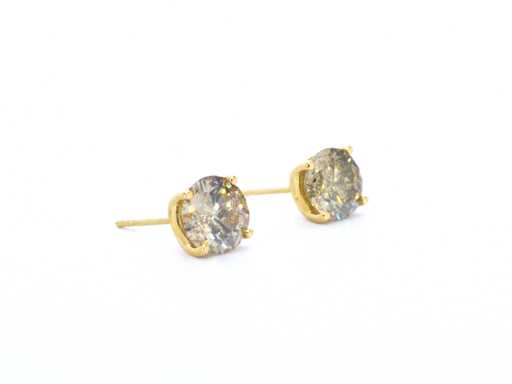 Geelgouden champagne solitair oorbellen 3.60 carat natuurlijke diamanten