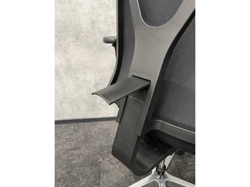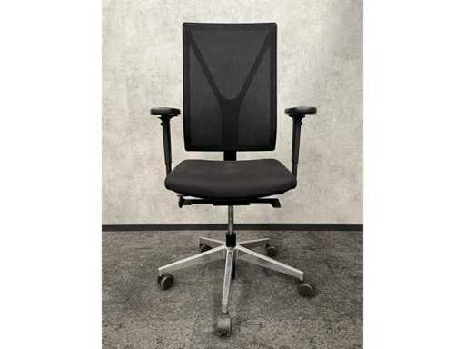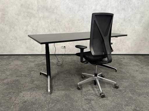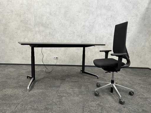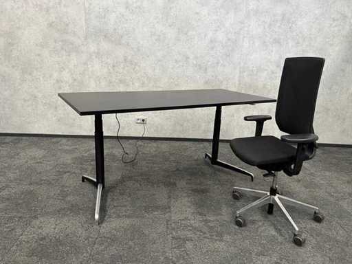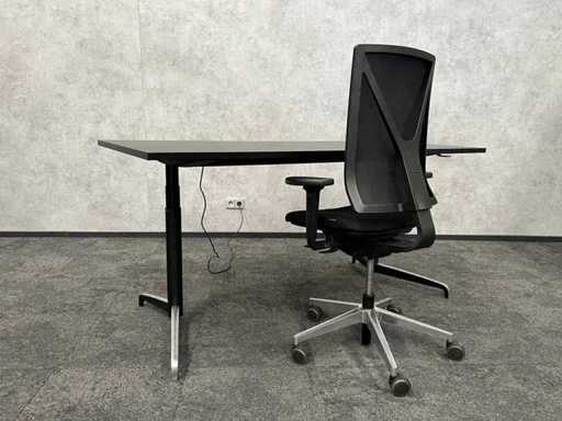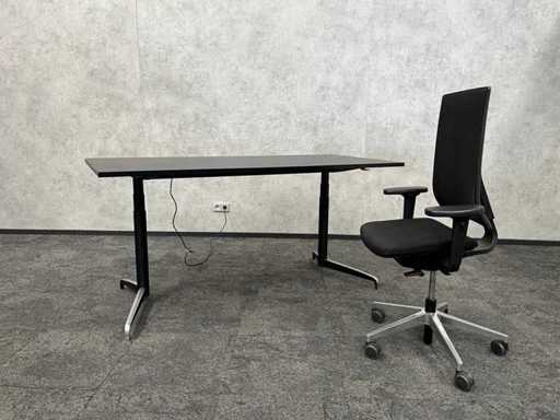 kavel bestaande uit 1x Holmris design bureau, elektrisch verstelbaar, met geïntegreerde kabelgoot, werkblad hoogte ca. 66 tot 130 cm. ---- 1x Girsberger ergonomische bureaustoel v.v. 4D verstelbare armleggers, zithoogte en zitdiepte instelbaar, rughoogte instelbaar, kantelmechanisme rugleuning.