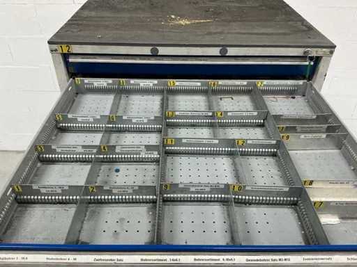 Gereedschapladen kast met inhoud 15 lade, grote voorraad boren,tapen,frezen en gereedschap