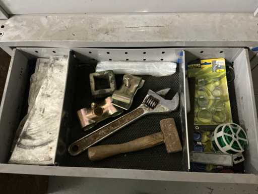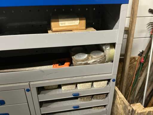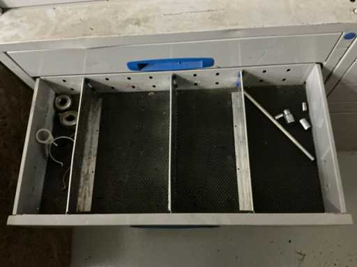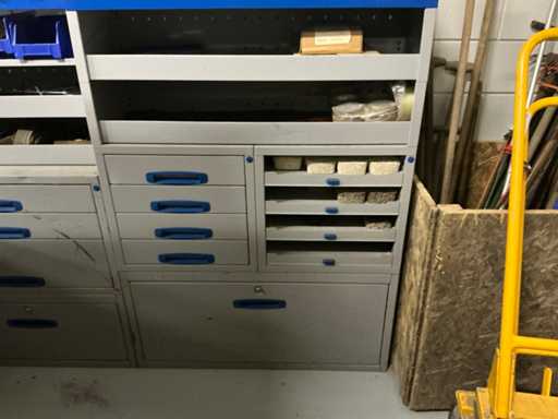 1x kast 76x36x146 cm; voorzien van 3x schuiflade; 1x kast 101x36x146 cm; voorzien van 4x schuiflade; let op onderste lade van beide kasten gaan niet open; met inhoud
