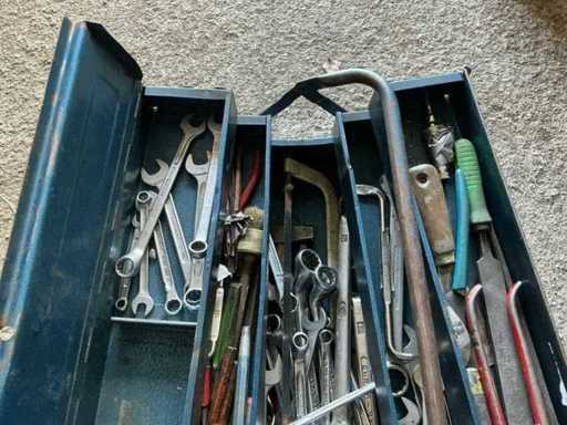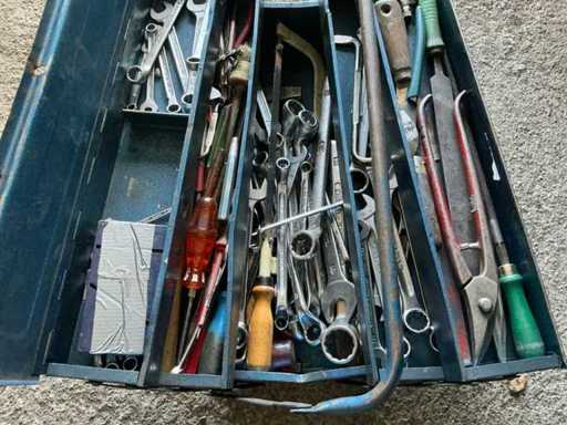Gereedschapskist met inhoud en 2x kabelspoelen