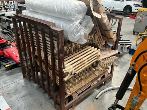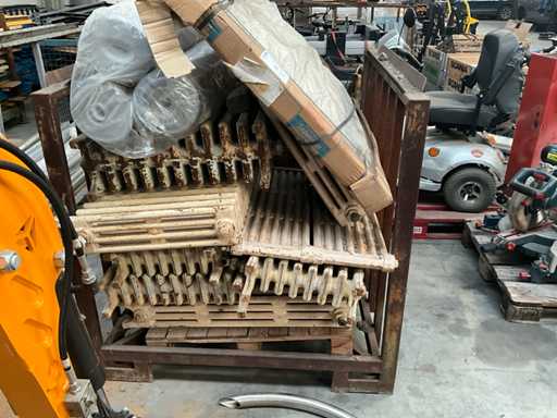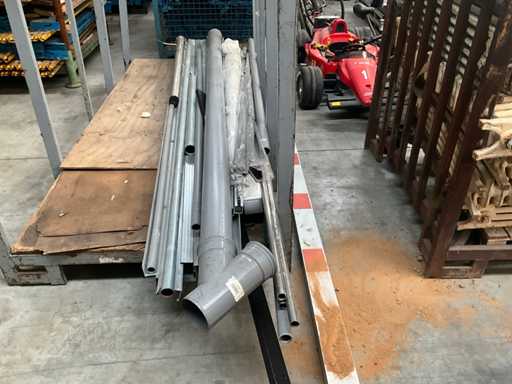 In stapelbare kooi, +3x rol reflectorfolie, + partij buizen pvc en metaal