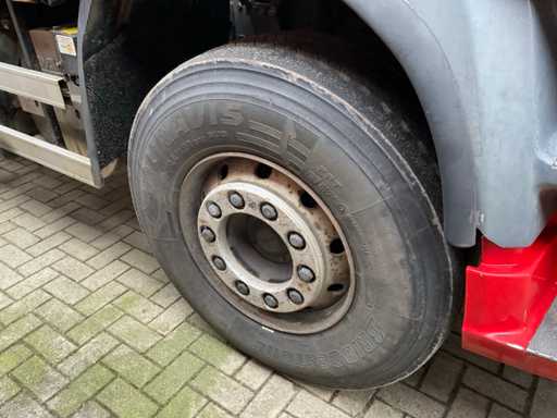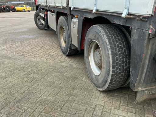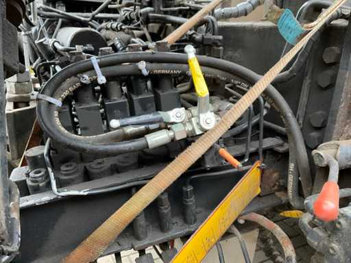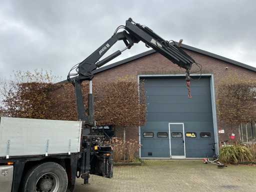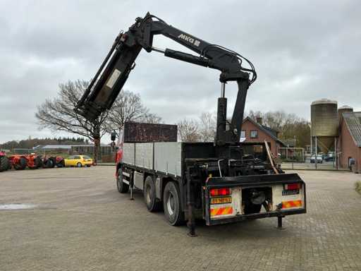 Voorzien van: 2002 MKG HLK225HP 3,6 ton Autolaadkraan met afstandsbediening, ventielenblok hangt los, widespread gestuurde as, lengtesper, dwarssper vaste en gestuurde as, 3x gereedschapskist, werklampen, voorbanden 385/65R22.5, achterbanden 315/80R22.5, diesel en adblue tank rechts, verstralers, laadbak afmetingen 525x245 cm, Ringfeder vangmuil, Ebs, 15 polige verlichting stekker, 27 mc, zijzicht camera, digitale tachograaf, kanteldak,