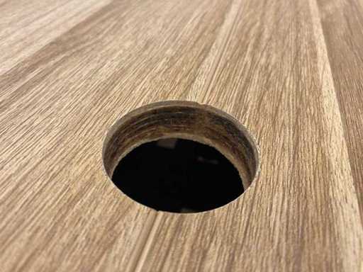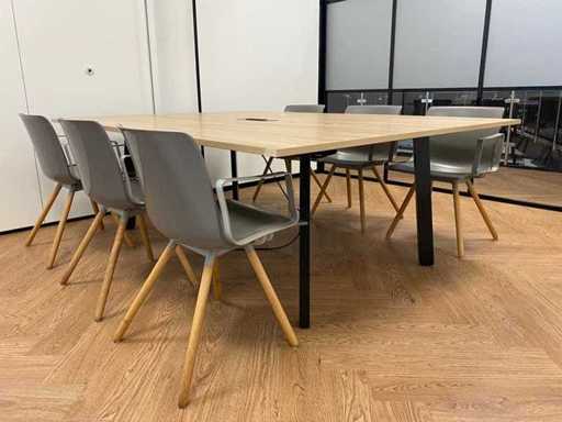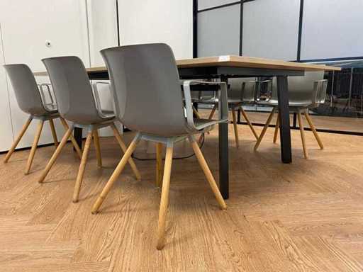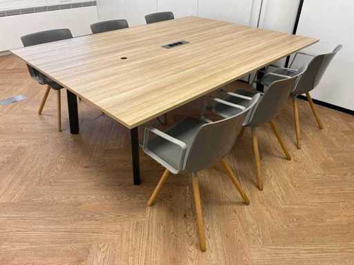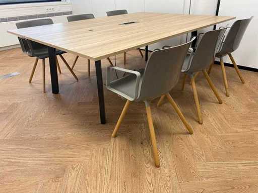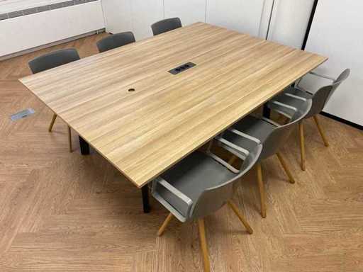 kavel bestaande uit 6x Gispen Nomi Wood design stoel en 1x conferentietafel v.v. kabeldoorvoer, draadgoot, inbouwmodule. tafel is reeds professioneel gedemonteerd