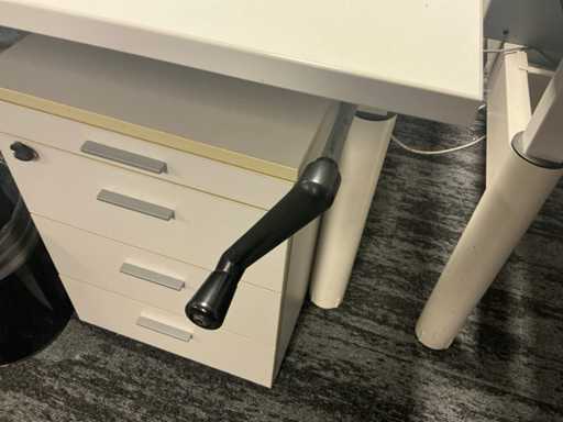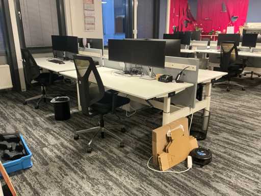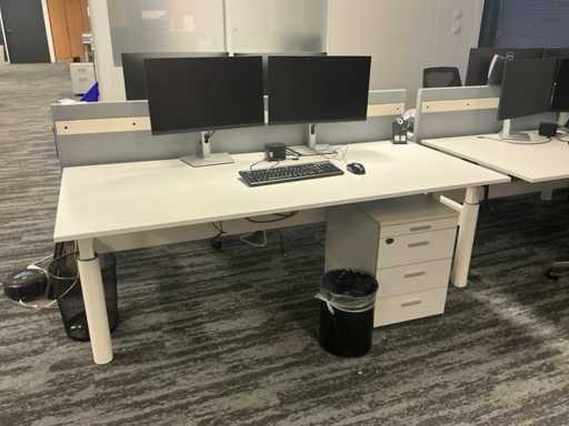 Afmeting blad: 180x80 cm. Met 8x bureaustoel, 3x ladeblok. Overige goederen niet inbegrepen.