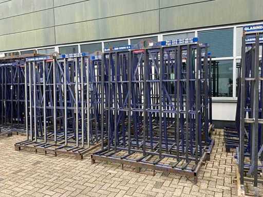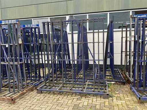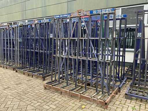 Stalen transportframe / bok (dubbelzijdig), voorzien van rubber berschermprofielen, hijsoog, heftruck lepelgaten, met inhoud
