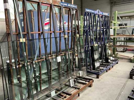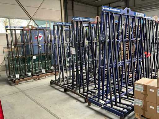 Stalen transportframe / bok (dubbelzijdig), voorzien van rubber berschermprofielen, hijsoog, heftruck lepelgaten, met inhoud