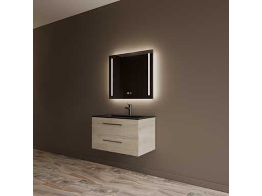 Bestaat uit; 1x Spiegel 60 x 70cm; 1x Onderkast 60 Lengte x 55 Hoogte x 45cm Diepte; Wastafel 960 x 45cm; 5x colli;