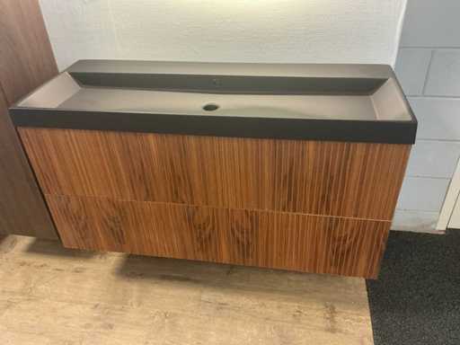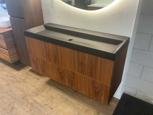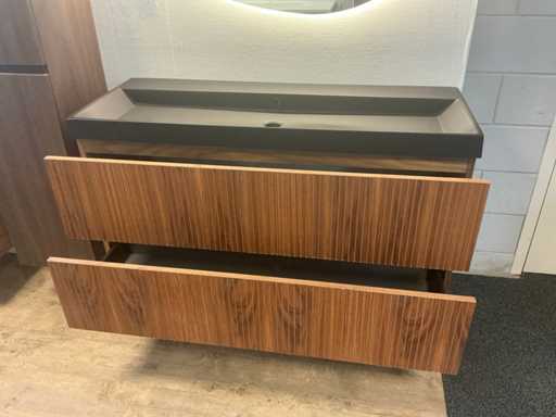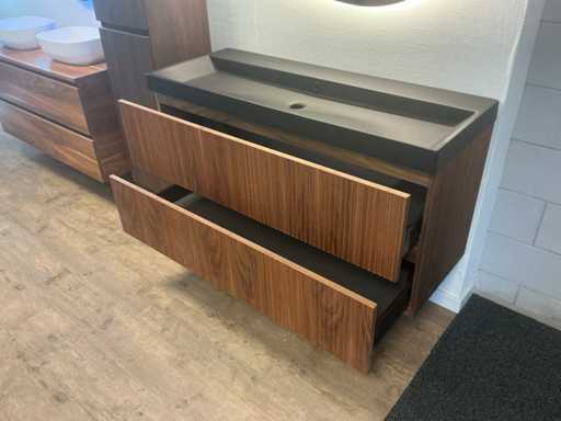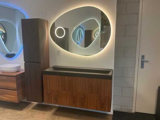 Bestaat uit; 1x onderkast 120x45cm; 1x wastafel cast Marble zwart 120cm; 1x Badkamerspiegels voorzien van verlichting en vergrootglas 120x90cm