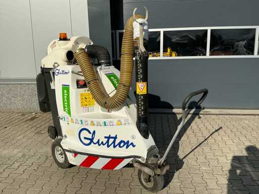 Voorzien van: De Glutton Electric is een 100% elektrische afvalszuiger van Glutton Cleaning Machines (België) met een 24V-aandrijving, vermogen van circa 15.000 m³/h luchtverplaatsing, autonomie van 8–10 uur, laadtijd van 6–8 uur, afvalcapaciteit van 240 liter, slangdiameter van 125–150 mm, geluidsniveau onder 70 dB, gewicht van ongeveer 200–250 kg, afmetingen van ca. 160×80×120 cm, geschikt voor stedelijke reiniging.
