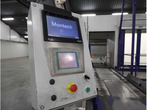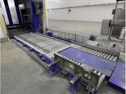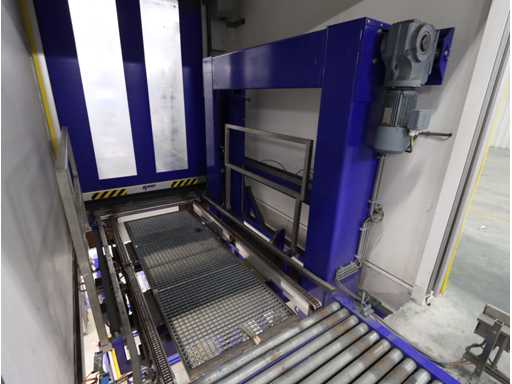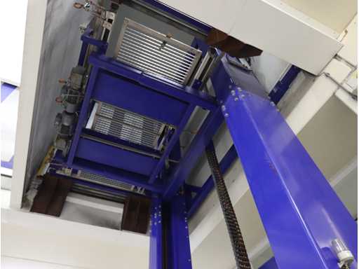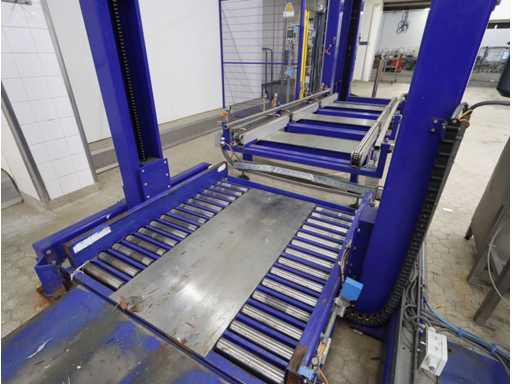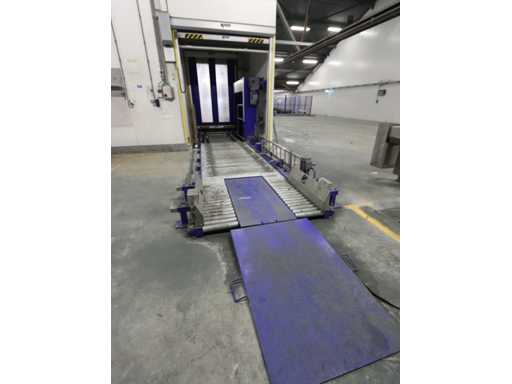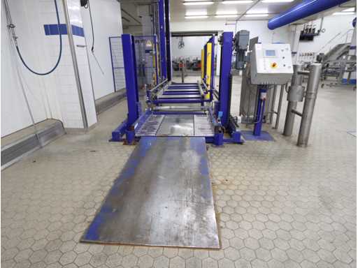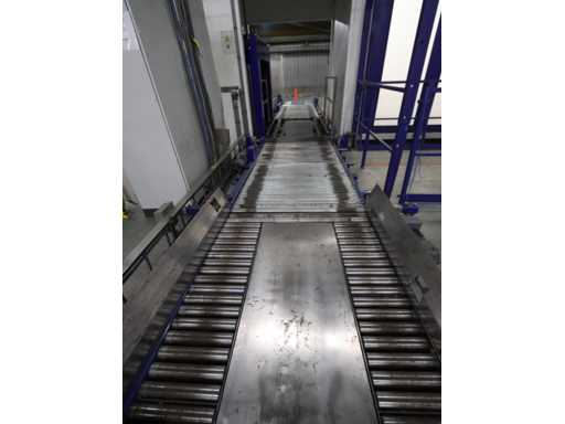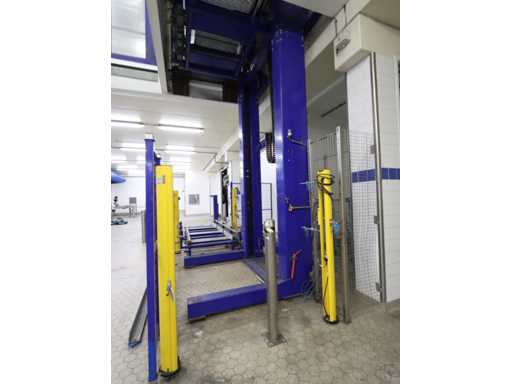 Hef hoogte 4600 mm, voorzien van veiligheidshek, optische beveiliging, schakelkast, inrij buffer, ketting transportbaan, lengte 3500 mm, 2 zijdige rollen uitvoer transportbaan, lengte 4500 mm, (speeddeuren op de 1e verdieping zijn niet inbegrepen)