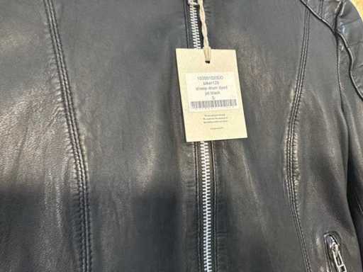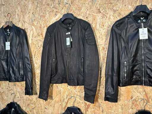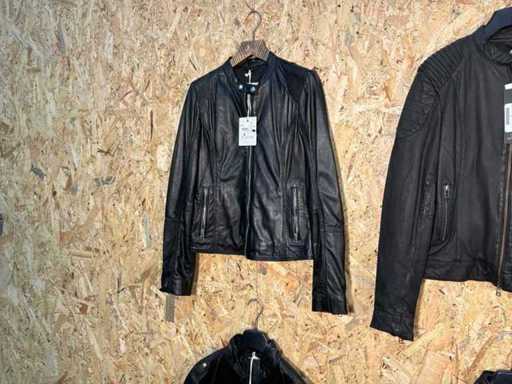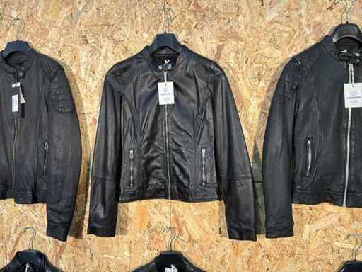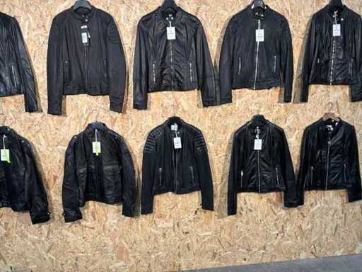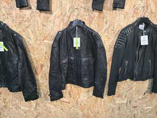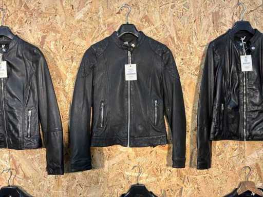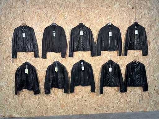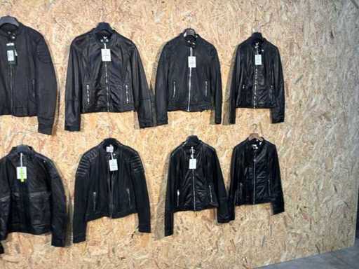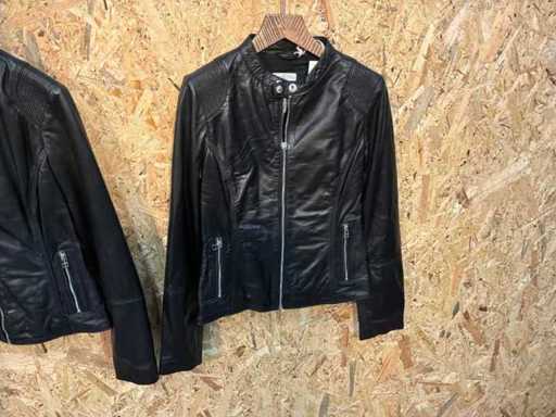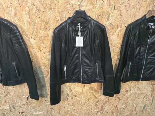 Diverse dames leren jassen en vesten in verschillende modellen, kleuren en maten.