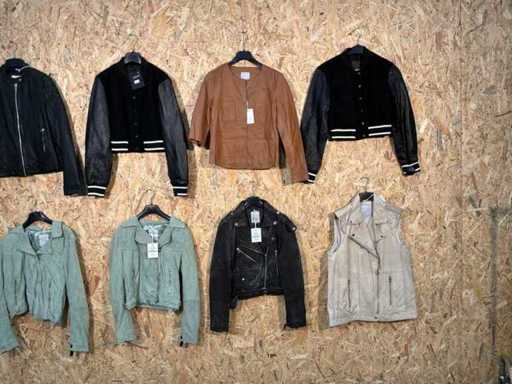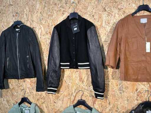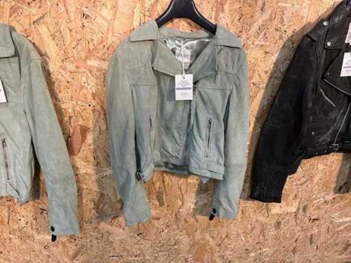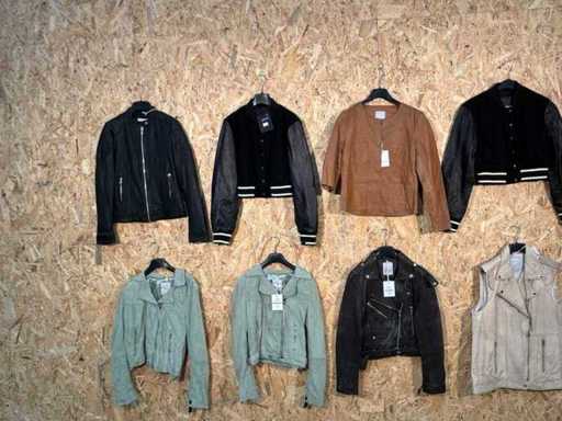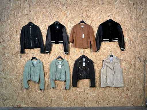 Diverse leren dames/heren jackets en vesten in verschillende modellen, kleuren en maten.