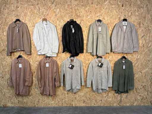 Diverse dames leren blazers en bloezen in verschillende modellen, kleuren en maten.