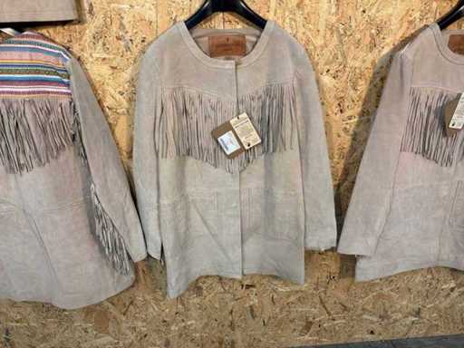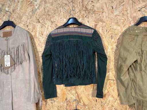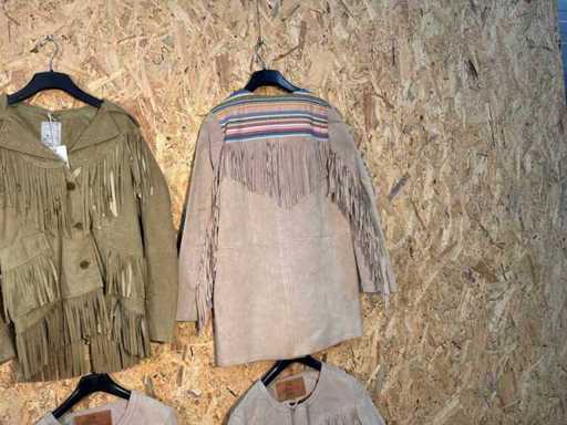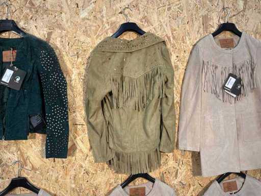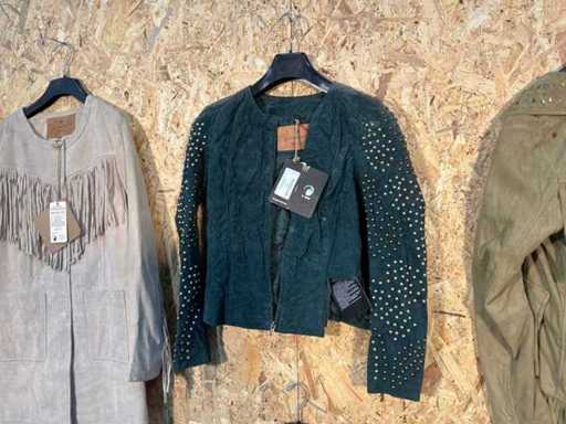 Diverse dames leren jackets in verschillende modellen, kleuren en maten. Inclusief kledinghangers. Mochten erop de items beveiligingstags zitten worden deze nog verwijderd voor de uitleverdag.