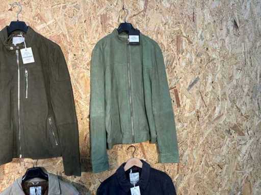 Diverse heren leren jackets en overshirts in verschillende modellen, kleuren en maten. Inclusief kledinghangers. Mochten erop de items beveiligingstags zitten worden deze nog verwijderd voor de uitleverdag.