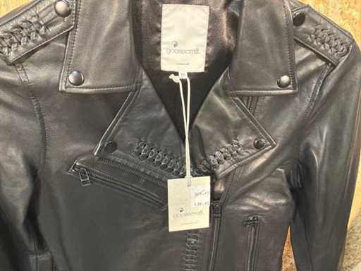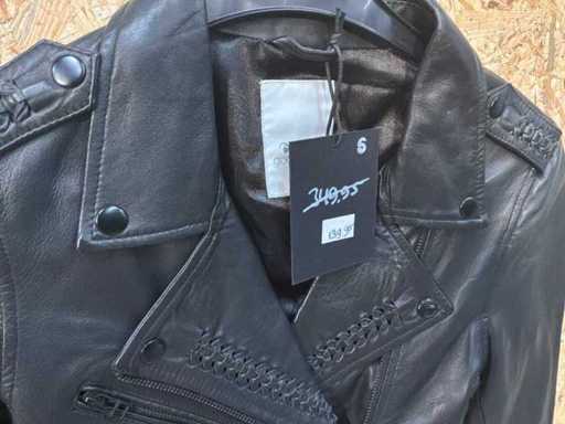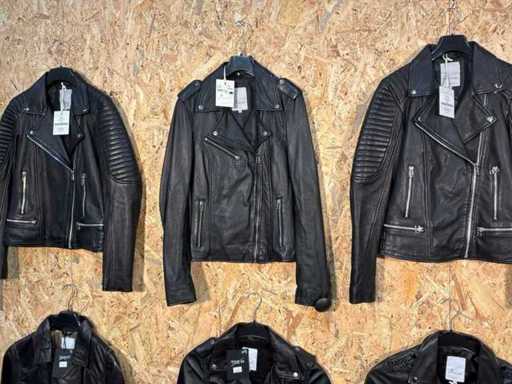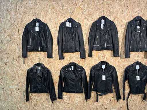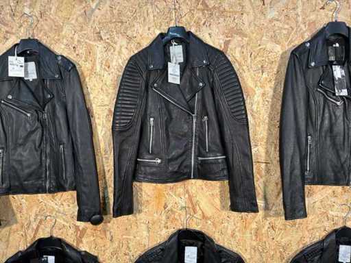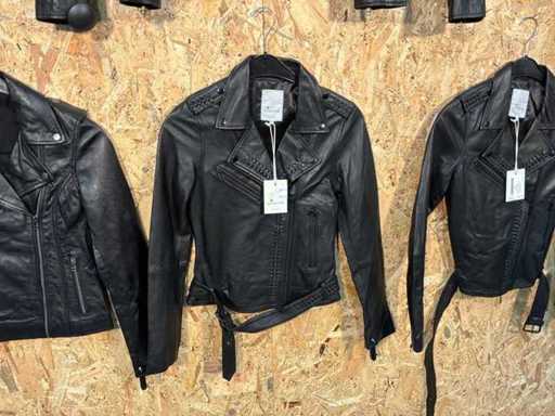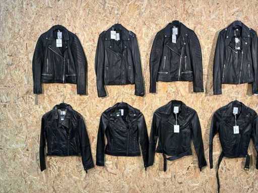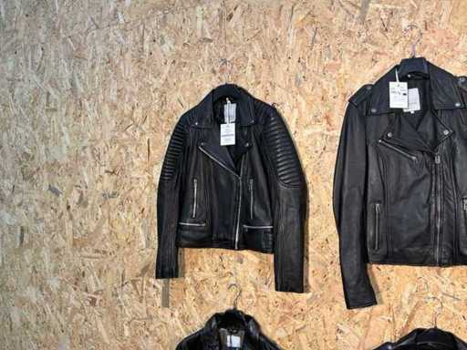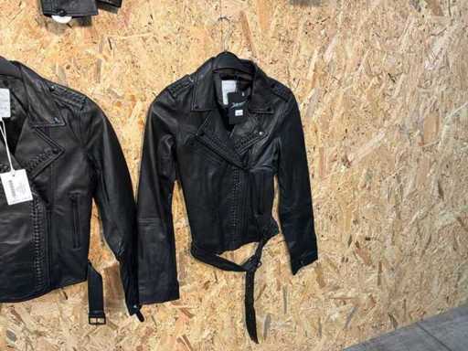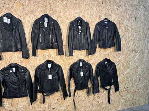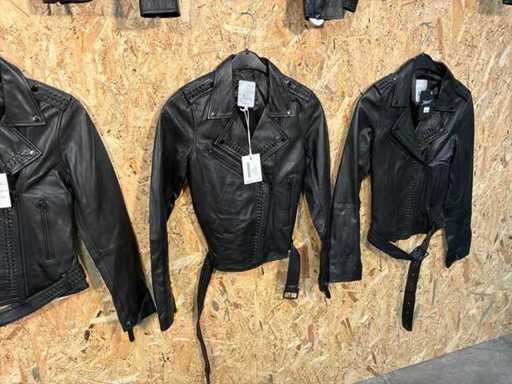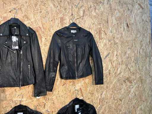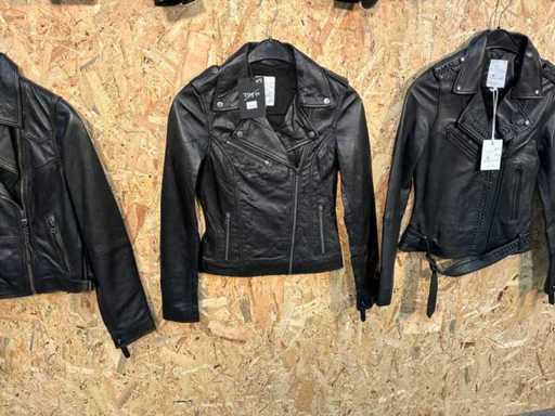 Diverse damen leren jassen in verschillende modellen, kleuren en maten.